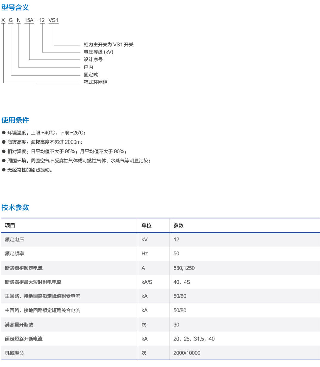 XGN15-12(VS1)單元式交流金屬封閉環(huán)網(wǎng)開(kāi)關(guān)設(shè)備