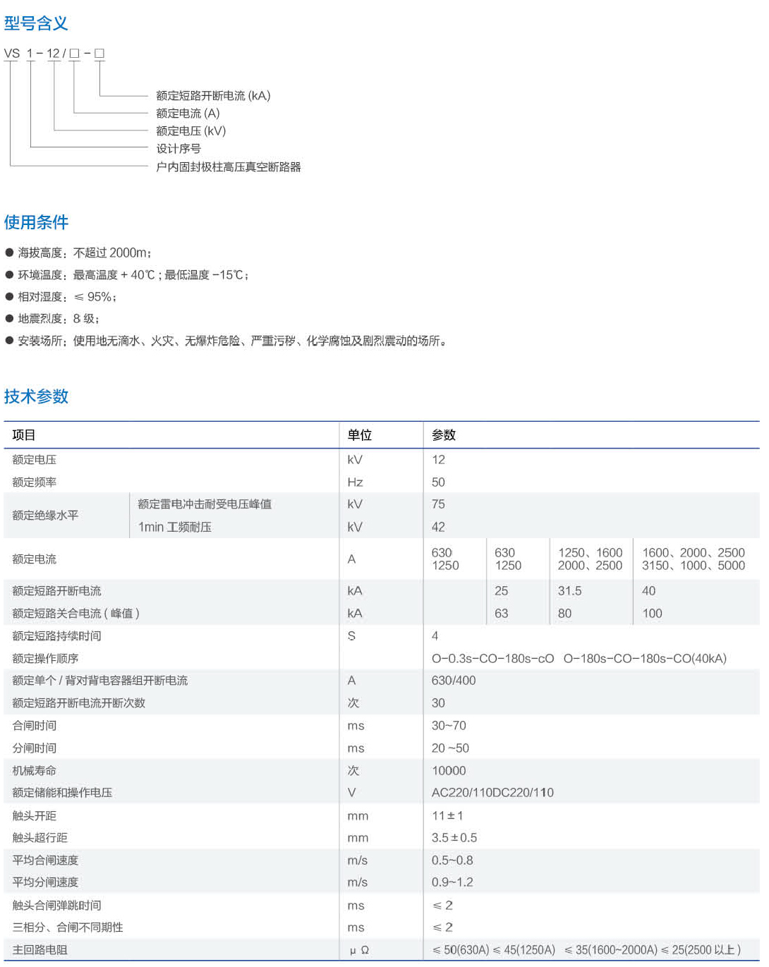 VS1-12戶內(nèi)固封極柱高壓真空斷路器