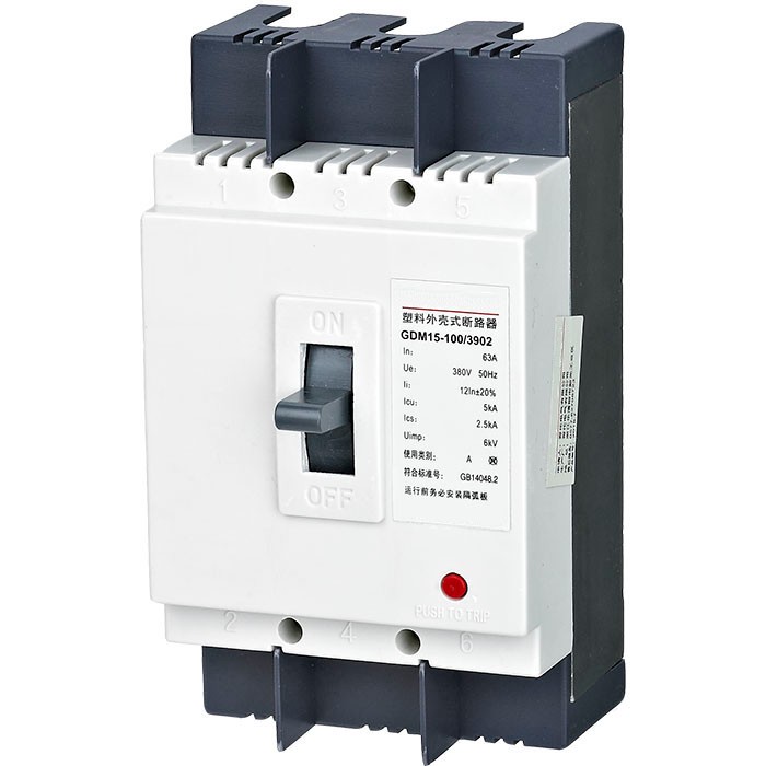 GDM15系列塑料外殼式斷路器適用于交流50Hz額定工作電壓380V及以下,其額定電流從6A至100A。01型一般作為配電用,在配電網(wǎng)絡(luò)中用來分配電能和保護(hù)線路及電源設(shè)備免受過載、短路的損壞;02型的斷路器亦可作為保護(hù)電動(dòng)機(jī)用。其中透明塑料外殼式斷路器具有可見斷點(diǎn)的可視開關(guān)狀態(tài)亦可作為隔離開關(guān)用。