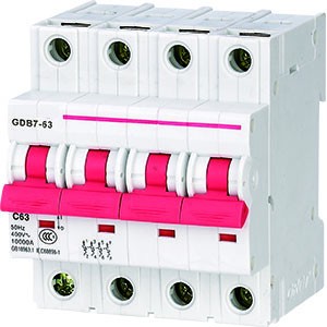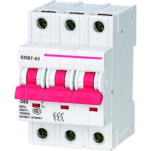GDB7-63小型斷路器(以下簡稱斷路器),主要用于交流50Hz/60Hz,額定工作電壓至400V,額定電流至63A及以下的配電線路中,作過載和短路保護,亦可作為線路不頻繁通斷操作與照明線路之用。