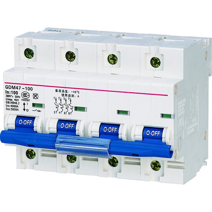 GDM47-125(NC125)系列塑料外殼式斷路器具有高分?jǐn)嗄芰拖蘖魈匦裕瑫r(shí)具備隔離開關(guān)功能,還可以拼裝漏電保護(hù)附件,并能與多種電氣輔助裝置組成功能性開關(guān)組合,廣泛適用于低壓配電系統(tǒng)中作為過載、短路保護(hù), 適用于隔離用。 斷路器額定工作電壓 AC230V(1P),AC400V(2P、3P、4P)。